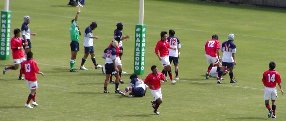 1・浜野(長崎南山B)、2・大賀(東筑C)、3・入江(明石清水C)、4・下道(関西学院C)、5・波佐間(山口大津C)、6・松尾遼(東福岡@)、7・広津(東筑B)、8・清水(長崎南山A)、9・奥河(鳴尾B)、10・石井(東筑C)、11・松尾康(東福岡A)、12・平井(東筑A)、13・山口(東筑B)、14・金崎(星陵B)、15・野中(関西学院C)、セカンドジャージ京産(赤)、関学(紺・白)。体力と体格で京産が勝利した印象。今日の出来では関学の方が組織として機能しているように思えた。京産SH・田中はこの中では抜けた存在。田中のボール供給ペースに早稲田並みのアタックラインをつくる速さがあれば100点以上ゲーム。田中謙一が初登場。ラインアウトやモールで活躍の場がありそうだ。