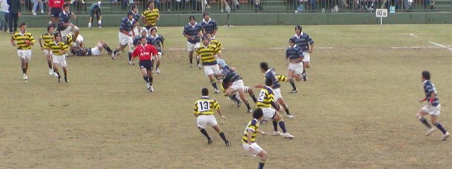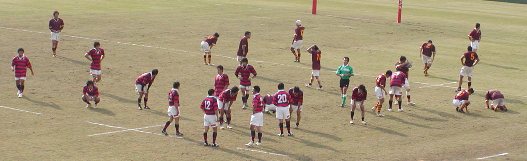 NHKが全国中継。そのせいかレフェリーは久しぶりの岩下氏だった。「アンデイ」といいながら神鋼・ミラーをシンビンにしたのも岩下氏だったはず。ニュージーランド学生でも「ボール・ボール」だけで会話しているようにみえたぞ。文句言うたらしっぺかえしがあるので選手はご注意。仙波のシンビンは同大ファンの野次のとばっちりをくったんだろう。