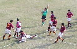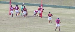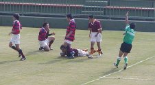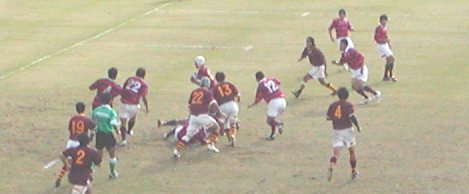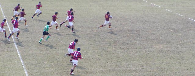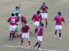 京産が38−26とリードした後半30分過ぎからの攻防がすべて。近大がほとんどボールを支配して攻勢を仕掛けるが、決定的なところでのハンドリングエラー、So渡海谷のイン・ゴールへのキックなど判断違いとも思える攻撃で1トライしか奪えなかった。京産のDFがよかったわけではなく近大がエラーしただけのこと。スキルの高いチームなら簡単にやられていた。京産の襟をつかんで止めたプレーは近大の認定トライでも可だと思うが。
