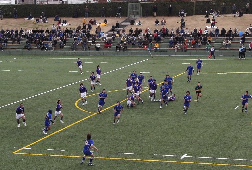 後半 花園敵陣22m内のキック龍11マークしてキャッチ。ボールキープの連続攻撃が基本だが・・・・???。