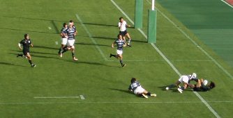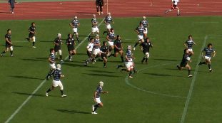 同志社はトライの取られ方に問題があって簡単に抜かれすぎ。ディフェンスに課題を残しそう。後半は同大FWがプレシャーかけBK展開。本来のスタイルがみえた。