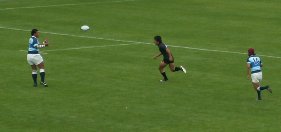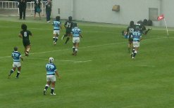 開始早々から関学のパワーが圧倒。トンガ抜きの大産ではB並みの力しかないので仕方ないところだが、11番の末崎がいい動きをしていた。ただし、関学はメンバーチェンジ後得点力が落ち込んだ。特に6・7が抜けた後と、末崎に追いつかれた長野のスピードが落ちているように感じた。