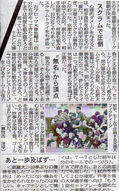 天理は京産の土俵であるスクラム・モールで京産を抑え込む。
