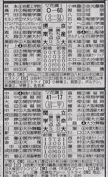 69分 同志社 立川 勝ち越しトライ ・ 2分関学 先制とらい