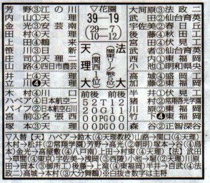 前半・天理(5T2G0PG) 29−7 法政(2T0G0PG)
