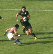 天理が開始15分までに4Tとったときは、昨年に続き100点ゲームかと思れた。後半ハベアが交代。法政FWがスクラムを押し始め、縦突進と勢いを盛り返し天理が失速。(バックスタンドの法政ファンが元気づく) 天理はFwが耐え切れないのと足をつる選手がでて不安要素が露呈。天理の来シーズンのチーム力は後半ぐらいだろうか?立川・ハベアがいる今年が勝負の年だが・・。39−19でPGを狙う機会があったもののトライをとりにいき失敗。PG3点で42にしておけば3T3Gとられても安全圏だったのに。とjはいうものの法政が勝てる流れでもなかった。