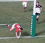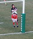 、後半になるとサントリーの継続攻撃が効きだし神鋼の守備ラインに穴ができはじめた。7分サントリー北條が10mライン付近から抜け出し50m独走トライ(G)(画像G)。神鋼は10分PGを決めて31−14と逃げ切りにかかる。サントリーは16分5m付近ラックからスコーンがトライ(G)(画像H)。21分・吉田(画像I)、27分坂田(画像J)がトライし34−31と点差をつめてロスタイムに突入。40分35m付近から早野が神鋼のスキを見出してインゴール飛び込み(画像K)38−34とサントリー逆転。キックオフ後サントリーの反則からPKを得て攻撃を仕掛け、ミラーのサントリーラインの裏け蹴りこむボールを平尾が拾い上げてトライしロスタイムに再度逆転(L)する集中力をみせつけ決勝に駒を進めた。