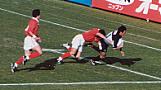 L 前半10分神鋼はPG(G)(画像A)で先制。16分自陣10m付近ラックから最後はミラーが抜け出し60mの独走トライ(G)(画像B)。26分ミラーがパスをインターセプト80mの独走トライ(G)(画像C)、30分にも5m付近から左展開し平尾がトライ(G)(画像D)。35分サントリーは永友がトライ(画像E)を返したが、神鋼は39分にも富岡がトライ(G)(画像F)。前半を終了して31−7と神鋼が大きくリード。
