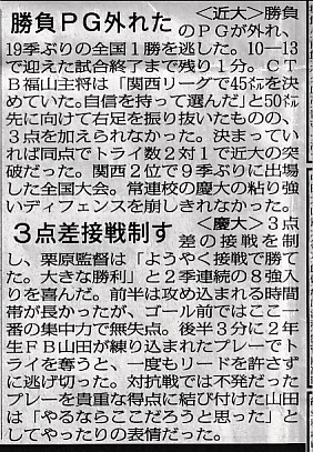 キックチャージで2点阻止したのが大きかった。もっともゴールを決めていたら41点になっているので余裕の勝利だった。