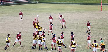 C,龍谷BKの反撃(13:18)。D,ラインアウトは立命が京産ボールをたびたびキャッチ(14:28)。