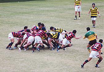 A、大体大モールで前進(前半10分頃、12:25)。B、大体大スクラムで押し込む(12:52)