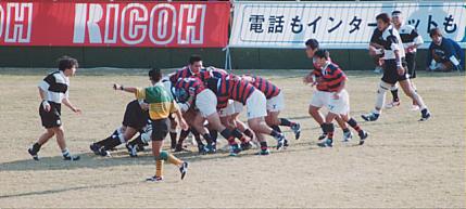京産大はモールから攻撃の起点を組み立てた(14:38)。B体大ラインアウトから展開(15:08)