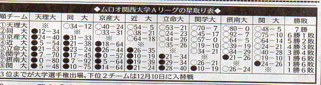 第5節 京産*関学、同大*関学、近大*摂南、天理*立命